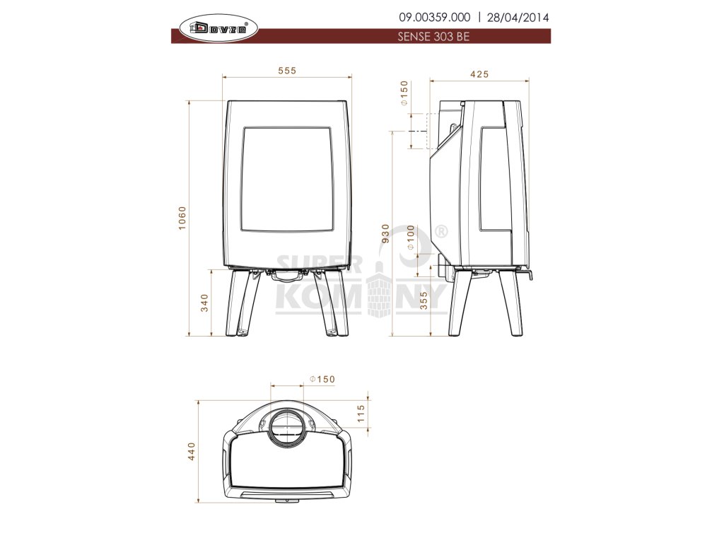 | Průměr kouřovodu: | 150 mm |