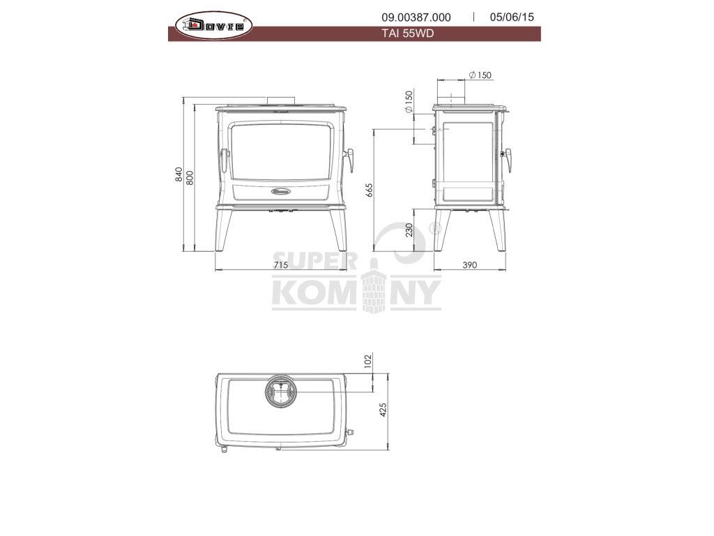 | Průměr kouřovodu: | 150 mm |