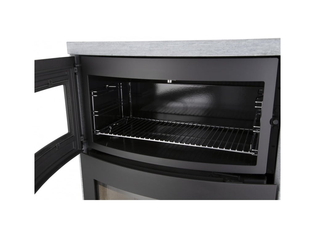 Kamna Scan-Line 1000B - obklad mastek / pískovec jsou moderní designová kamna s obrovským výhledem na plameny díky velkému prosklení spalovací komory. Kamna mají integrovanou širokou píckou o rozměru 56 x 24 x 33 cm (Š x V x H) s roštem a teploměrem, která vám zajistí mnoho kulinářských zážitků. Jedná se dosud o nejširší a největší 100% funkční pícku, která vám umožní péct, ohřívat a rozmrazovat různé pokrmy.