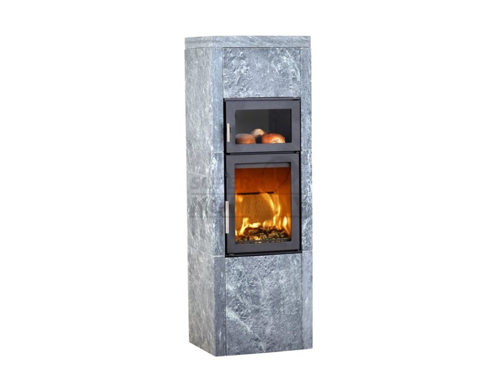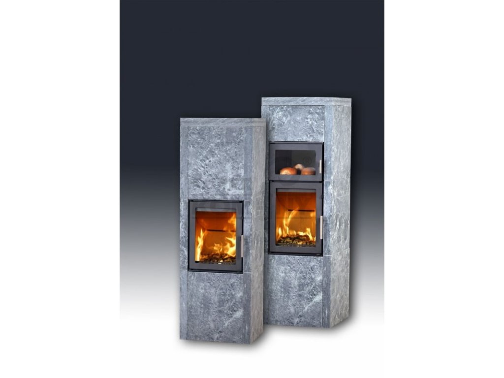 Tělo je obložené akumulačním nerostem pod názvem mastek a celková váha kamen činí 482 kg, což tvoří obrovské tepelné zisky z akumulace. Spalovací komora je de facto krbová vložka obložená mastkem, čímž vznikly samostatně stojící krbová kamna s velice objemnou spalovací komorou, vysokou akumulací a dokonalým spalováním. Díky tomu dokáží vytápět prostor až 240 m3.