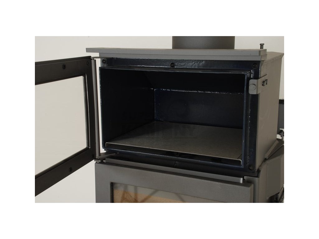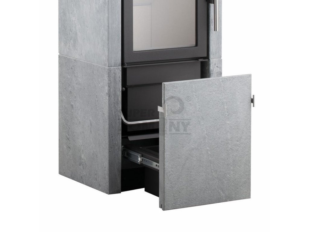 Pod spalovací komorou je popelník o objemu 8 litrů vyjmutelný po vysunutí spodního šuplete, kde se také skrývá úložný prostor na různé drobnosti, které chcete mít po ruce u kamen...