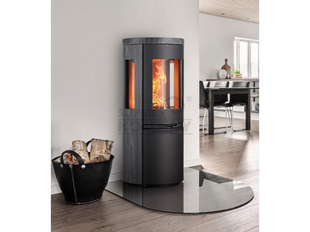 Scan-Line 900 boční prosklení mohou mít akumulační obklad z kamene mastek, pískovec blackwood, nebo vápenec, čímž si zajistíte větší akumulaci tepla.