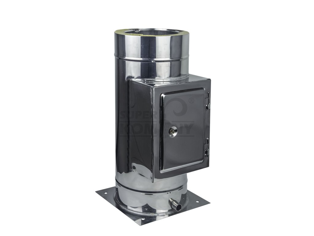 Nerezové izolovaný t-kus k odvodu spalin od spotřebičů na na všechny druhy paliv, pro podtlakový provoz.