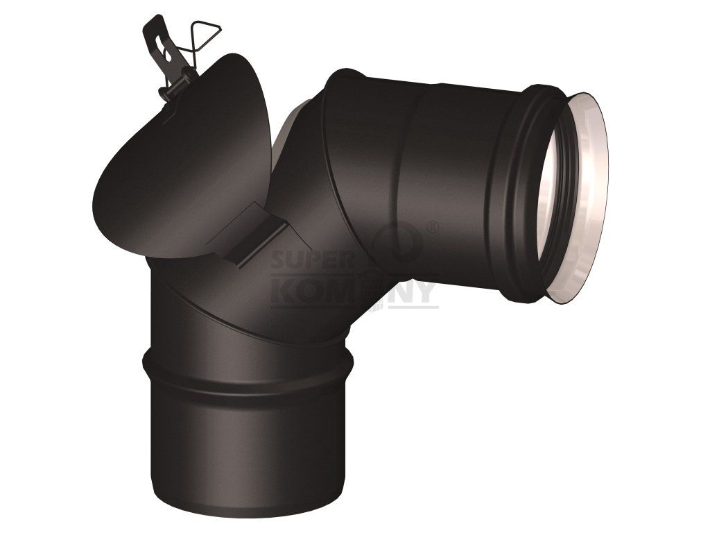Koleno 90° s čistícím otvorem z nerezové oceli AISI 316L s vnitřním průměrem 80 mm, umožňuje čištění spalinové cesty bez nutnosti rozebírat celou sestavu kouřovodů.