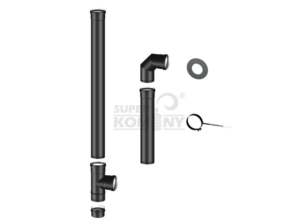 Kompletní sada nerezových kouřovodů pro napojení peletových kamen na komín – Ø 80 mm, černá matná povrchová úprava