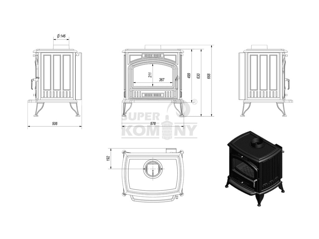 | rozměry topeniště (v/š/h) | 300 x 450 x 270 mm |