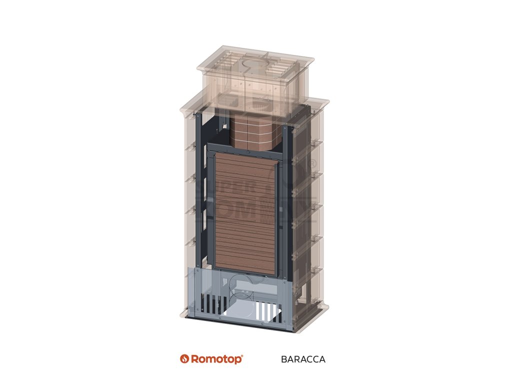 Akumulační kachlový krb BARACCA kombinuje estetiku tradičních kachlových kamen s moderní technologií a výjimečnou akumulační kapacitou. Keramické kachle značky HEIN nabízejí širokou paletu odstínů glazur, díky čemuž se krb dokonale začlení do jakéhokoli interiéru. Modulový systém krbu umožňuje jeho sestavení až na místě realizace.Kombinovaný způsob vytápění krbu je založen na předávání tepelné energie sáláním a současným prouděním ohřátého vzduchu. Ve spodní části krbu je nasáván studený vzduch, který postupně prochází celým vnitřním prostorem až nahoru a odtud již ohřátý pozvolna vystupuje do interiéru. Systém je navržen tak, aby předávání tepla sáláním bylo prioritou a proudění vzduchu (neboli konvekce) pak příjemným doplňkem – vše probíhá samočinně.Moderní krbová vložka nabízí účinnost více než 85 % a splňuje nejpřísnější ekologické standardy stanovené směrnicí Evropské komise o Ecodesignu. Dvojité sklo krbu zaručuje bezpečnost a komfort. Kachlové akumulační krby BARACCA jsou vhodné i pro nízkoenergetické domy. Spalovací komora je vyložena šamotovými tvarovkami, ve standardním provedení s roštem s možností změny na variantu bez roštu. Jednoduchou kontrolu nad polohou zcela otevřených dvířek umožnuje jejich aretace. Snadné nastavení primárního a sekundárního vzduchu jedním ovladačem. Výstup spalin je standardně možný horním nebo zadním odvodem. Díky sekundárnímu přívodu vzduchu na vnitřní plochu skla dvířek je účinně zabráněno usazování nečistot. Inovativní systém vedení spalin DOUBLE SPIN lépe využívá tepelnou energii a současně napomáhá ideálnímu hoření dřeva. Samozřejmost je dnes už nezbytný centrální přívod externího vzduchu (CPV) do spalovací komory.