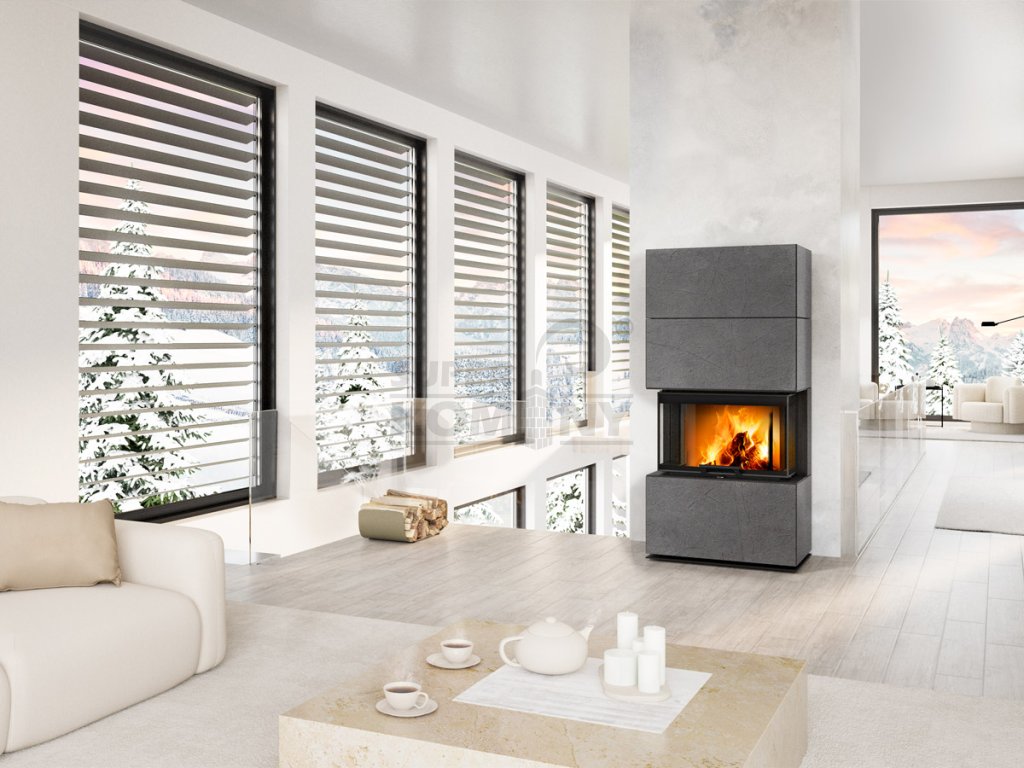 CARA C thermaline - designový akumulační krb s výsuvnými dvířky - Dělené sklo
