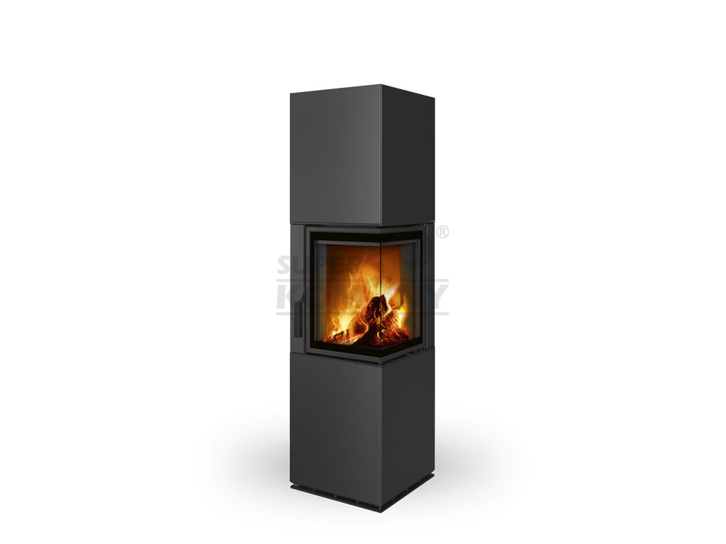 HARMONY R/L HA plech - designový rohový akumulační krb - Dělené sklo, pravé provedení, včetně akumulace MAMMOTH