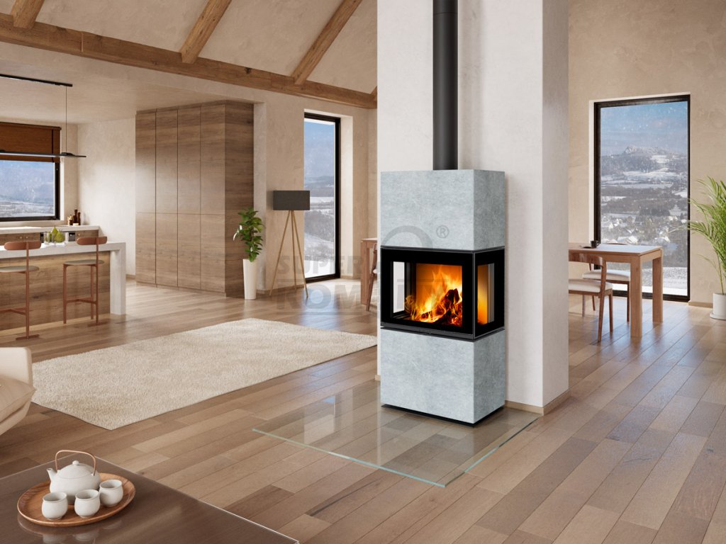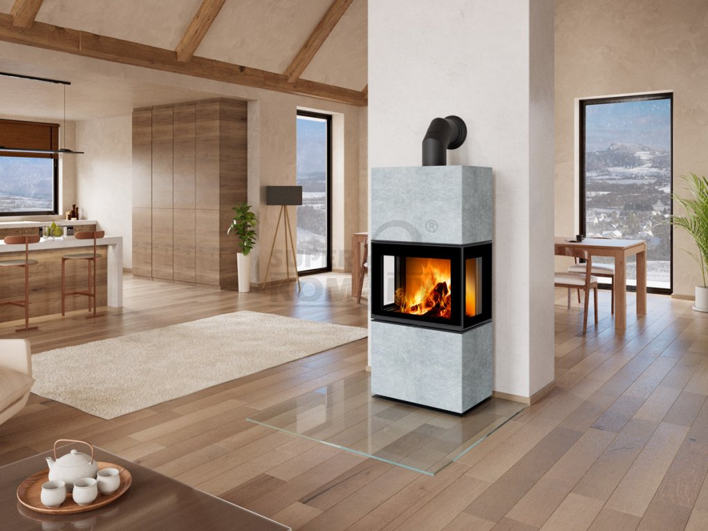 Na výběr jsou tři varianty opláštění – keramické kachle, přírodní kámen nebo lakovaný ocelový plech. Pro ty, kdo hledají nadčasovou povrchovou úpravu originálního vzhledu, je k dispozici varianta s obkladem Thermaline.