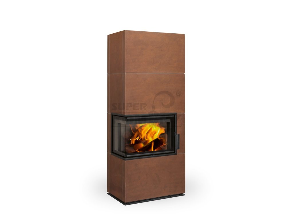 Keramický obklad je na všech čtyřech stranách. V nabídce jsou tři typy kachlových krbů, a to s rovným topeništěm nebo s rohovým levým a pravým. Spalovací komora je vyložena šamotovými tvarovkami, ve standardním provedení s roštem s možností změny na variantu bez roštu. Inovativní systém vedení spalin DOUBLE SPIN zvyšuje celkovou účinnost krbu. Výstup spalin je standardně možný horním nebo zadním odvodem. Díky sekundárnímu přívodu vzduchu na vnitřní plochu skla dvířek se účinně zabraňuje usazování nečistot. Čistému pohledu na oheň tak nic nebrání. Regulace primárního a sekundárního přívodu vzduchu se řídí jediným ovládacím prvkem.