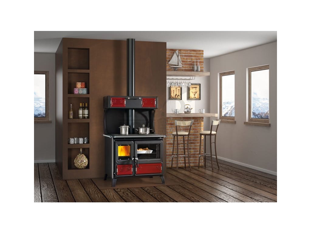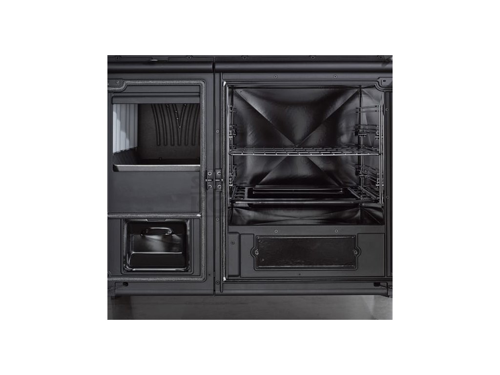 Kvalitní litinový sporák na topení dřevem a dřevěnými briketami s proskleným ohništěm a dekorativním kachlovým obkladem dvířek, zaručující nádherný vzhled. Kachlové obložení je nabízeno ve dvou barevných variantách – bordó a bílá. Tento typ sporáku se pyšní největší pečící troubou na trhu o objemu 78 l. Trouba je oboustranně smaltovaná, tudíž její povrch je odolný proti propálení a snadno se udržuje. Ve dvířkách trouby je integrovaný teploměr pro rychlou a přesnou kontrolu teploty, který tak zaručuje pohodlné pečení. Jako jeden z mála sporáků na trhu, umožňuje v zadní části napojení na externí přívod vzduchu a nečerpá tak vzduch pro hoření z místnosti.