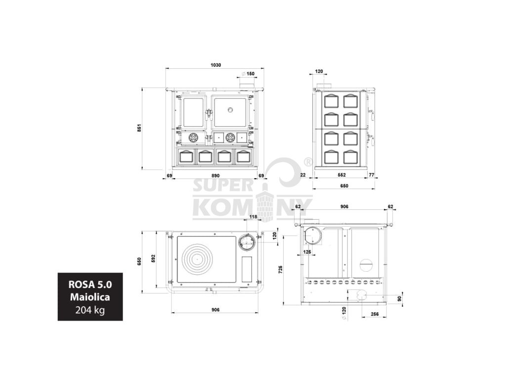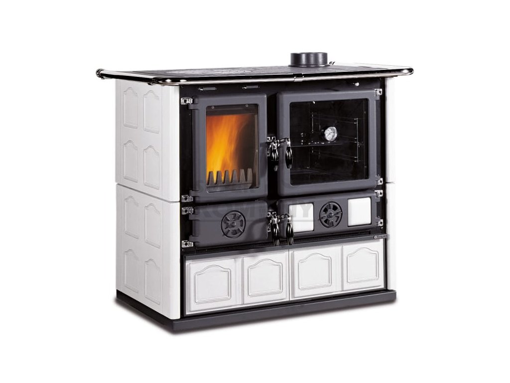 Kvalitní litinový sporák na topení dřevem a dřevěnými briketami s proskleným ohništěm a masivním kachlovým obkladem. Velice populární sporák nejen na chaty a chalupy, kde se využije na topení, ale i smaltovaná trouba na pečení a velká litinová plotna na vaření.