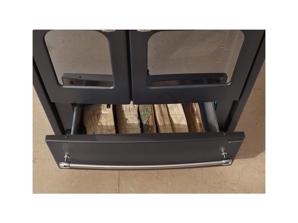 Ve spodní části je výsuvný úložný prostor na dřevo nebo na příslušenství ke sporáku. Vývod pro napojení kouřovodu je vždy napravo a může být nahoru nebo dozadu. Boky sporáku jsou s teplovzdušnými průduchy, které zaručují dokonalý přenos tepla a jeho rovnoměrné rozprostření v objektu. Kolem celé plotny je chromované madlo, které sporák zdobí a zároveň se dá využít pro odkládání a sušení utěrek nebo také pro zavěšení krbového nářadí.