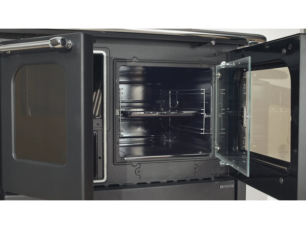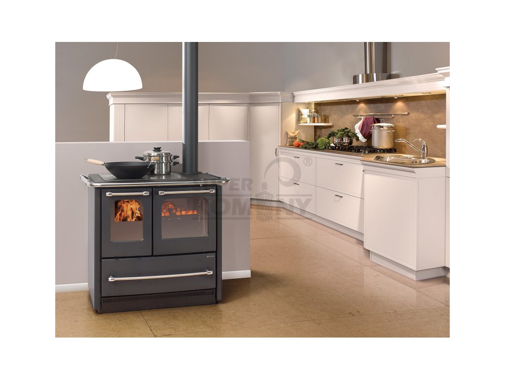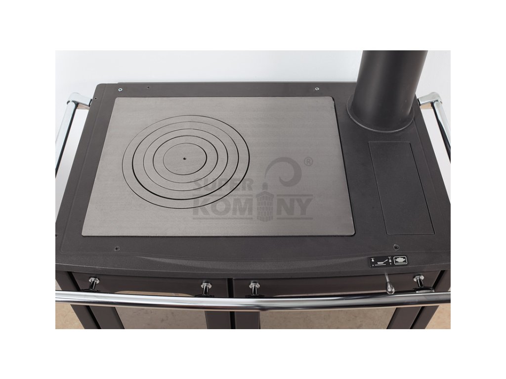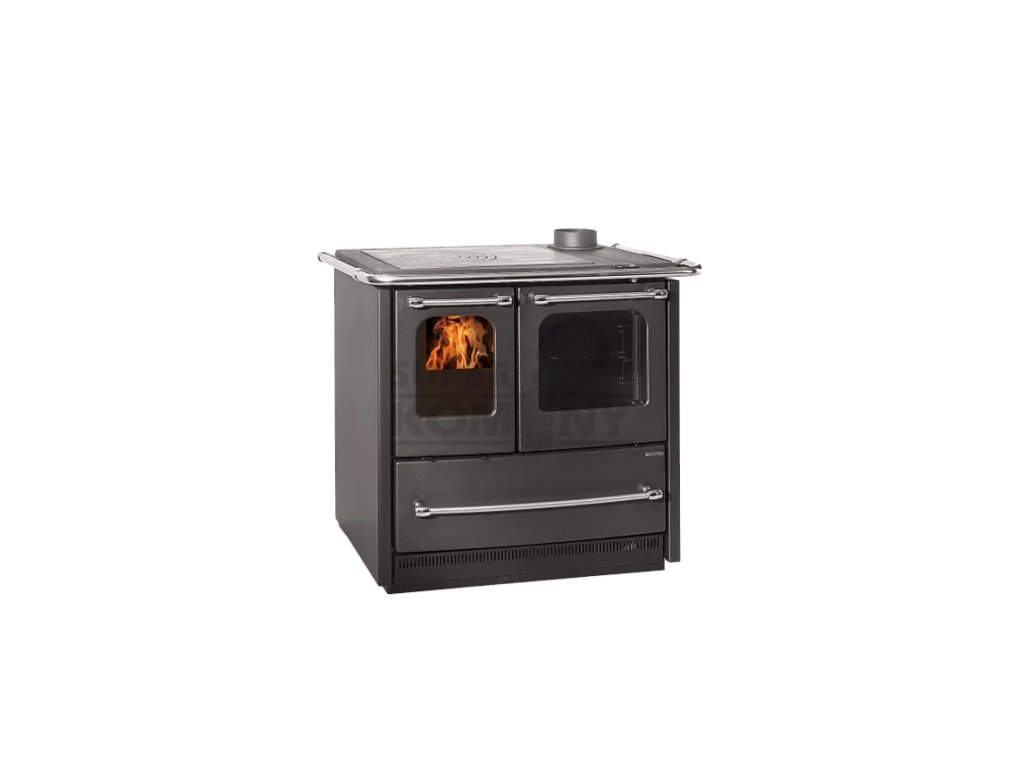 Kvalitní litinový sporák na topení dřevem a dřevěnými briketami s proskleným ohništěm. Velice populární sporák nejen na chaty a chalupy, kde se využije na topení, ale i smaltovaná trouba na pečení a velká litinová plotna na vaření.