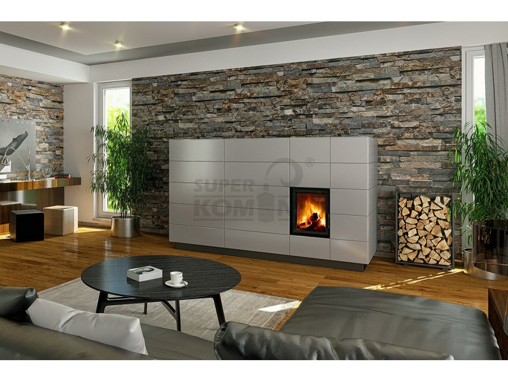 Kamnové vložky DYNAMIC PLUS jsou vyvinuty pro dlouhodobý provoz v kombinaci s různými typy akumulačních sestav.Tyto kamnové vložky v sobě spojují robustní konstrukci, vysokou účinnost a flexibilitu, čímž vytvářejí ideální základ pro individuálně řešená topidla zaměřená na stabilní výkon a dlouhodobé sálavé teplo. Konstrukce je optimalizovaná pro efektivní přenos tepelné energie do akumulačních prvků – přímé napojení do komína možné není, vždy je nutné vložku doplnit o vhodný akumulační systém. Plná kompatibilita s akumulačními prstenci MAMMOTH, modulárním systémem AMS či individuálně navrženými tahovými systémy umožňuje maximální využití tepelné energie uvolňované při spalování dřeva. Všechny typy jsou vybaveny dvojitým zasklením dvířek s potištěným designovým sklem, které omezuje přímé sálání tepla a zajišťuje rovnoměrnější rozložení teploty v místnosti. Spalovací komora je vyložena pěticentimetrovými šamotovými tvarovkami odolávajícími extrémnímu zatížení a sloužícími zároveň jako dodatečná akumulační vrstva. Nezávislý provoz zajišťuje systém CPV – centrální přívod externího vzduchu, který podporuje efektivní spalování i v nízkoenergetických domech. Sekundární vzduch proudí podél vnitřní strany skla a vytváří účinný oplach, čímž brání usazování nečistot a zachovává nerušený výhled do plamenů. Kamnové vložky DYNAMIC PLUS tak představují spolehlivé srdce každého moderního akumulačního topidla – výkon, životnost, komfort a nízká spotřeba v jednom.