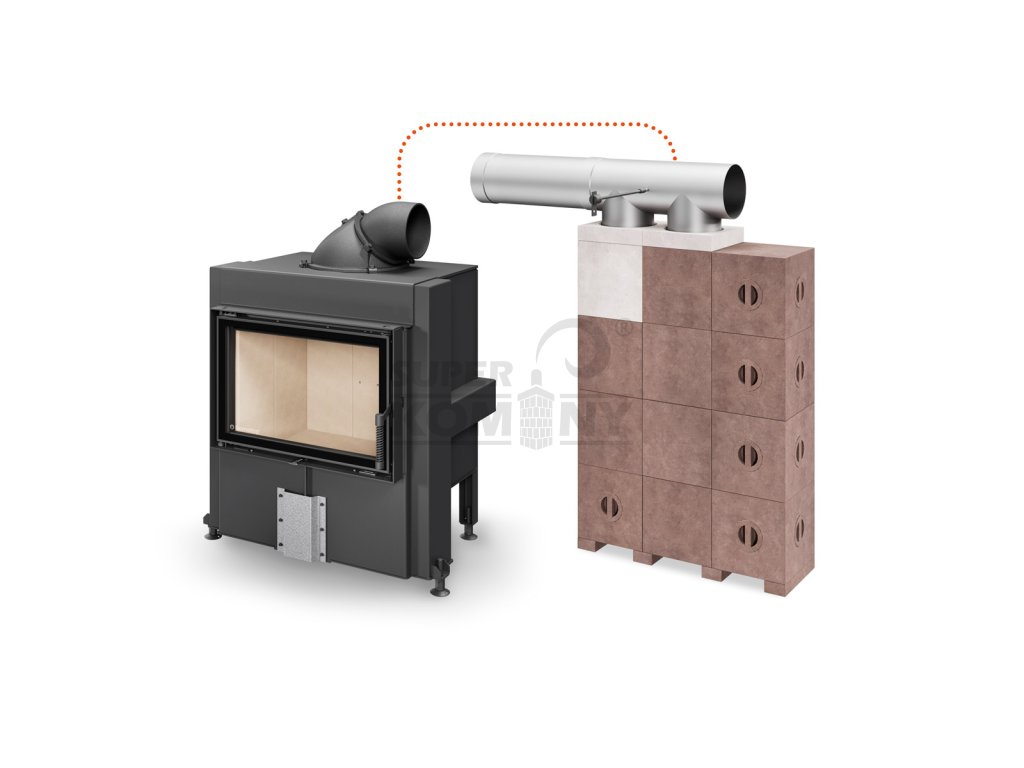 Flexibilní řešení pro dlouhotrvající sálavé teplo. Kamnové vložky DYNAMIC PLUS s akumulačním modulárním systémem AMS přináší vysoce efektivní způsob, jak přeměnit tepelnou energii ze spalování dřeva na dlouhodobé sálavé teplo.Klíčovým prvkem systému jsou speciální tvarovky s výjimečnou tepelnou vodivostí a vysokou objemovou hmotností (2750 kg/m³). Tyto moduly se instalují mezi kamnovou vložku a komín, kde rychle akumulují teplo ze spalin a poté jej postupně uvolňují do prostoru. Možnost montáže na pravou i levou stranu topeniště zajišťuje modulárnost při plánování realizace. Celková hmotnost systému činí přibližně 220 kg, délka spalinové cesty dosahuje 2,5 m, doporučená teplosměnná plocha topidla je pak minimálně 5 m².