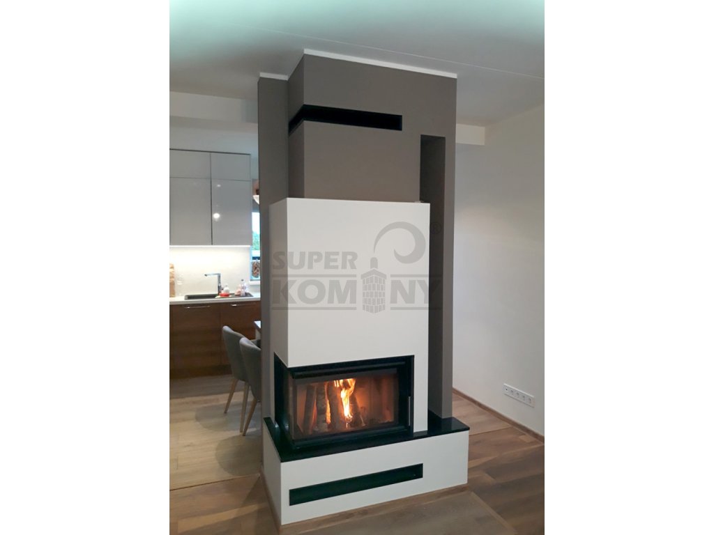 Rohové krbové vložky HEAT s otevíráním dvířek do strany jsou působivým doplňkem interiéru v moderním stylu. Nechte se podmanit příjemným teplem, které zútulní každý domov a dodá mu nadčasový design a osobitou atmosféru.Krbové vložky HEAT jsou určeny pro konvekční i akumulační provoz za použití odvětrávacích mřížek. Rohové sklo (levé, pravé) vložky je dělené (ze dvou částí). Rám dveří je vyroben ze speciálního tuhého válcovaného profilu. Sklo dvířek je designově potištěné. Vložky disponují systémem CPV – centrální přívod externího vzduchu. Spalovací komora je vyložena šamotovými tvarovkami a výklopným litinovým roštem s popelníkem. Spalovací komora je vyložena speciálním odolným materiálem IGNITON, dostupným ve světle šedém nebo černém provedení dle preference zákazníka. Litinový rošt je výklopný a obsahuje praktický popelník. Díky sekundárnímu přívodu vzduchu je sklo dvířek omýváno a tak nedochází k usazování nečistot. Regulaci primárního a sekundárního přívodu vzduchu lze řídit jediným ovládacím prvkem. Ke krbovým vložkám je možné dokoupit boční akumulační sadu a horní akumulační prstence MAMMOTH, které prodlouží dobu sálání tepla o více než 12 h. Inovativní systém vedení spalin DOUBLE SPIN zvyšuje účinnost a ekologičnost krbové vložky.
