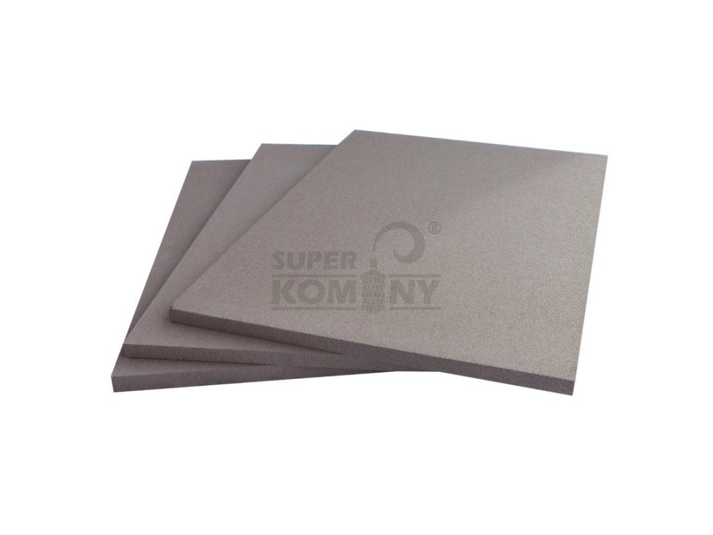 Vermikulitové desky THERMAX SF jsou určeny pro přímý kontakt se spalinami a používají se jako vystýlka topenišť. Dále je kamnáři používají na specifická místa při stavbě kamen a sporáků (izolace stropu sporáku, explozivní pojistky, různé přepážky). Konkrétní instalace potřebuje konkrétní řešení. Pokud desky instalujete jako vyzdívku topeniště, pamatujte na roztažnost a vynechejte mezi deskami vůli dle velikosti desek a topeniště 3 mm a více. Zabráníte tak prasknutí desky. Technické informace:Rozměr | 1 000 × 620 × 30 mm |
